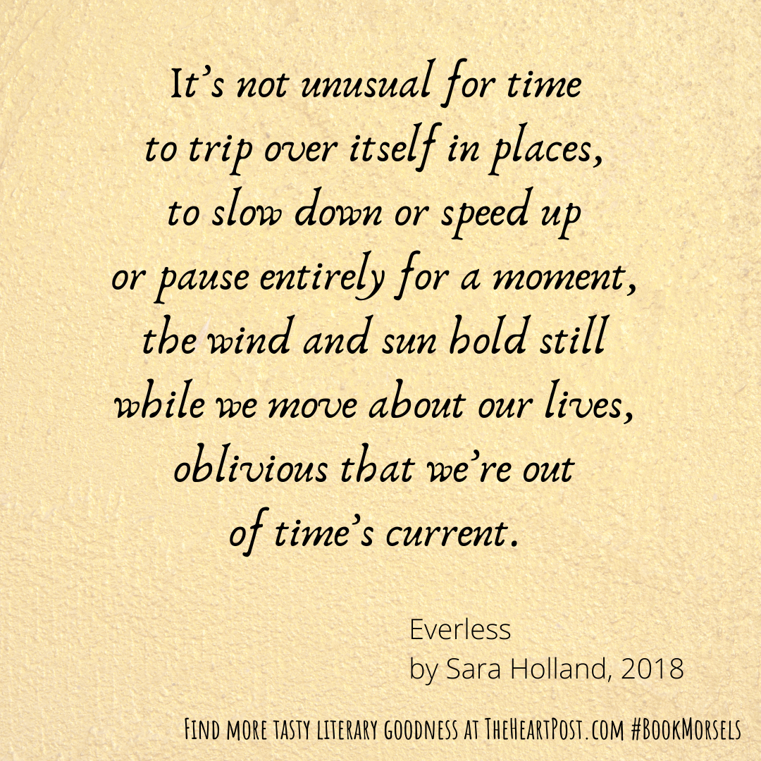 “It’s not unusual for time to trip over itself in places, to slow down or speed up or pause entirely for a moment, the wind and sun hold still while we move about our lives, oblivious that we’re out of time’s current.”